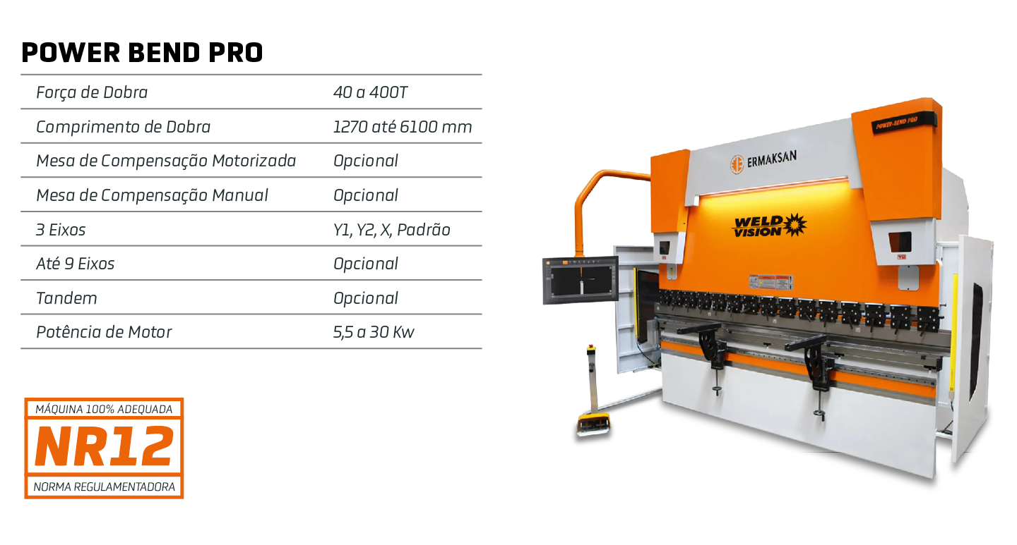 A Power Bend PRO possui modelos que variam de acordo com a sua aplicação e projeto, podendo ser de 1270 a 6100mm de comprimento de dobra