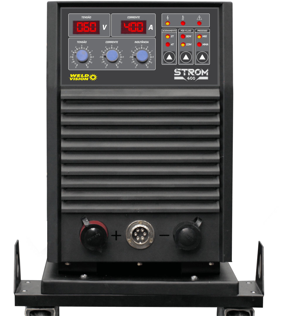 A STROM 400 é a escolha ideal para demandas industriais intensas, proporcionando soldagem de excelência em sessões prolongadas. Seu design robusto e versátil, aliado a um painel simplificado, garante ajustes fáceis e precisos.